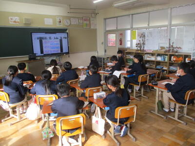 市内4年生がオンラインで一堂に会し、防災学習を行いました。