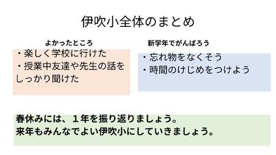 伊吹小つうしんぼ 投稿: 伊吹小学校 (03/24) 終了式の中で本部委員会の子どもたちが発表しました。 楽しく1年間過ごすことができましたね。 「がんばろう」のところはぜひ次の学年で「できた」にかえていこう! 本部委員のみなさん、ありがとう。 Tweet -