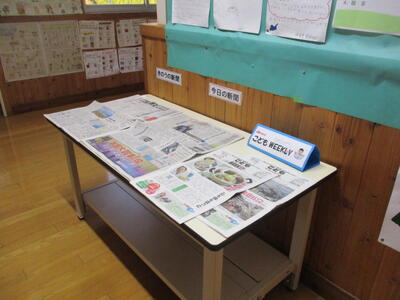 昨年度図書委員だった児童が、職員室に新聞を取りに来て、全校児童が手に取りやすいように